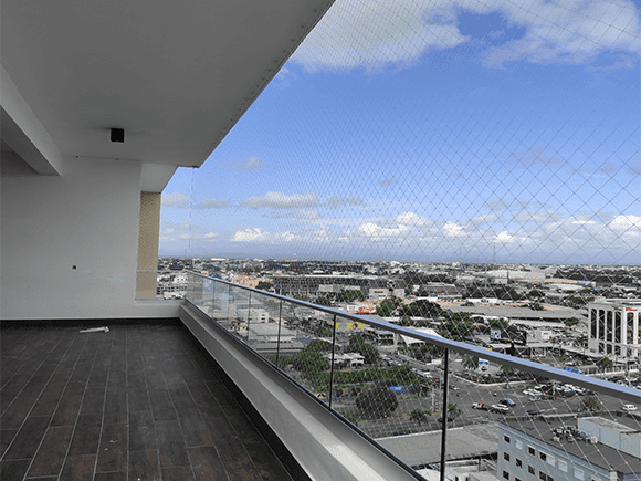 Las mallas para balcones de nylon monofilamento son prácticamente invisibles y tienen una resistencia radial de 140 kg / m2 (17 kg por diamante). Ninguna red o barrera de protección puede garantizar el 100% de seguridad en caso de accidente; sin embargo, el uso correcto de este producto reduce significativamente el riesgo de lesiones o muerte.