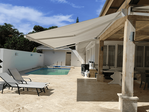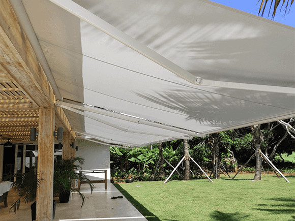 Las cortinas permas tienen un propósito similar a las cortinas de interior pero con un enfoque un poco diferente. La diferencia es que las permas bloquean los rayos solares antes que llegue a las ventanas. La adición de cortinas no solo agrega un hermoso elemento de diseño, sino que también hacen los patios, terrazas y balcones más habitables y acogedores mientras dispersa el calor y controla los insectos.